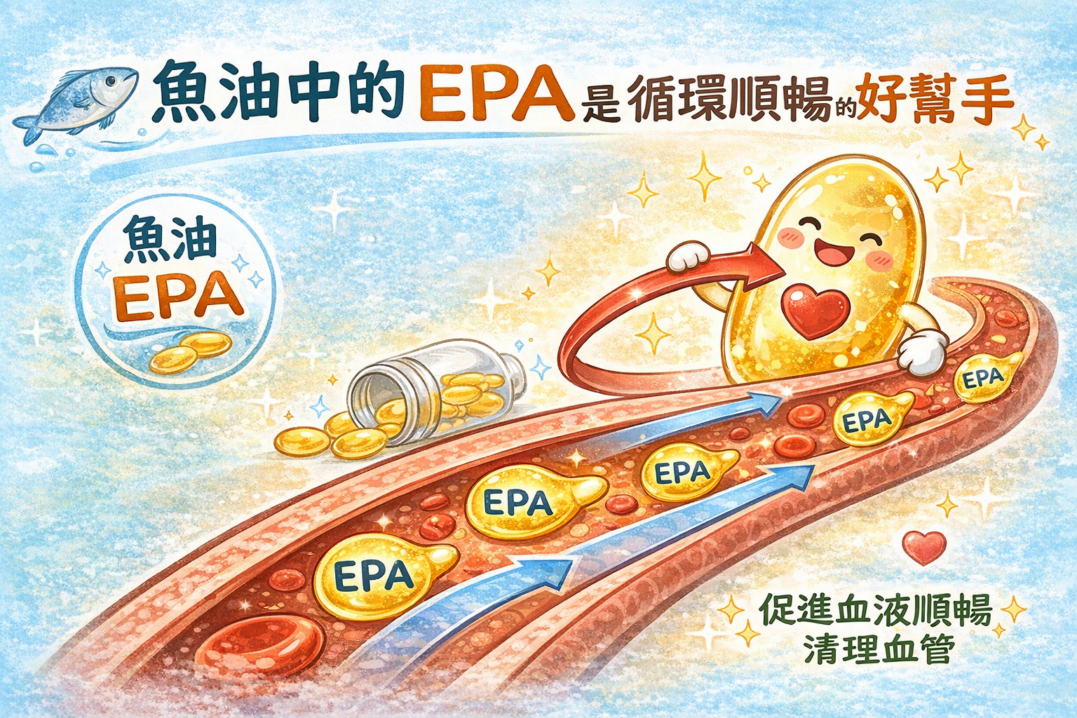 EPA可增加細胞膜彈性,降低三酸甘油脂與低密度脂蛋白(壞的膽固醇),有降血壓、防止血管與動脈硬化等功能,堪稱血管清道夫。魚油除了提供必需的Omega-3多元不飽和脂肪酸以外,還能促進維生素與脂溶性物質吸收及利用,在預防感染與促進生長發育方面也多有幫助。
